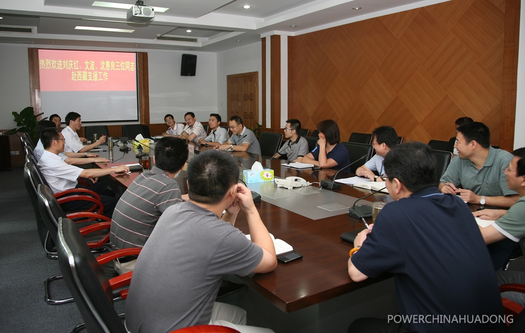 会上,人力资源部负责人首先简要介绍了援藏干部选派工作情况。院领导高度重视此次援藏干部选拔工作,各专业团队也积极响应,在不到一周的时间内完成了干部选拔、沟通、体检和报批工作,最终确认刘庆红、沈惠良、文波为华东院首批援藏干部。这三位同志均是华东院相关专业的技术骨干,他们专业技能过硬、思想素质高,有较强的工作能力和强健的体魄,并在既往的工作经历中创造了优良的业绩。三位同志将分别前往西藏发改委、西藏电力公司开展对口支援工作。
