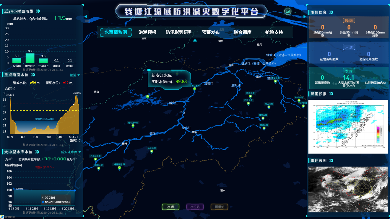 4月中旬,浙江省入汛当天,由浙江省水利厅牵头,我院开发的钱塘江流域防洪减灾数字化平台,完成了防洪主要功能模块的开发与测试,正式发布2.0版,实现省市县全贯通。