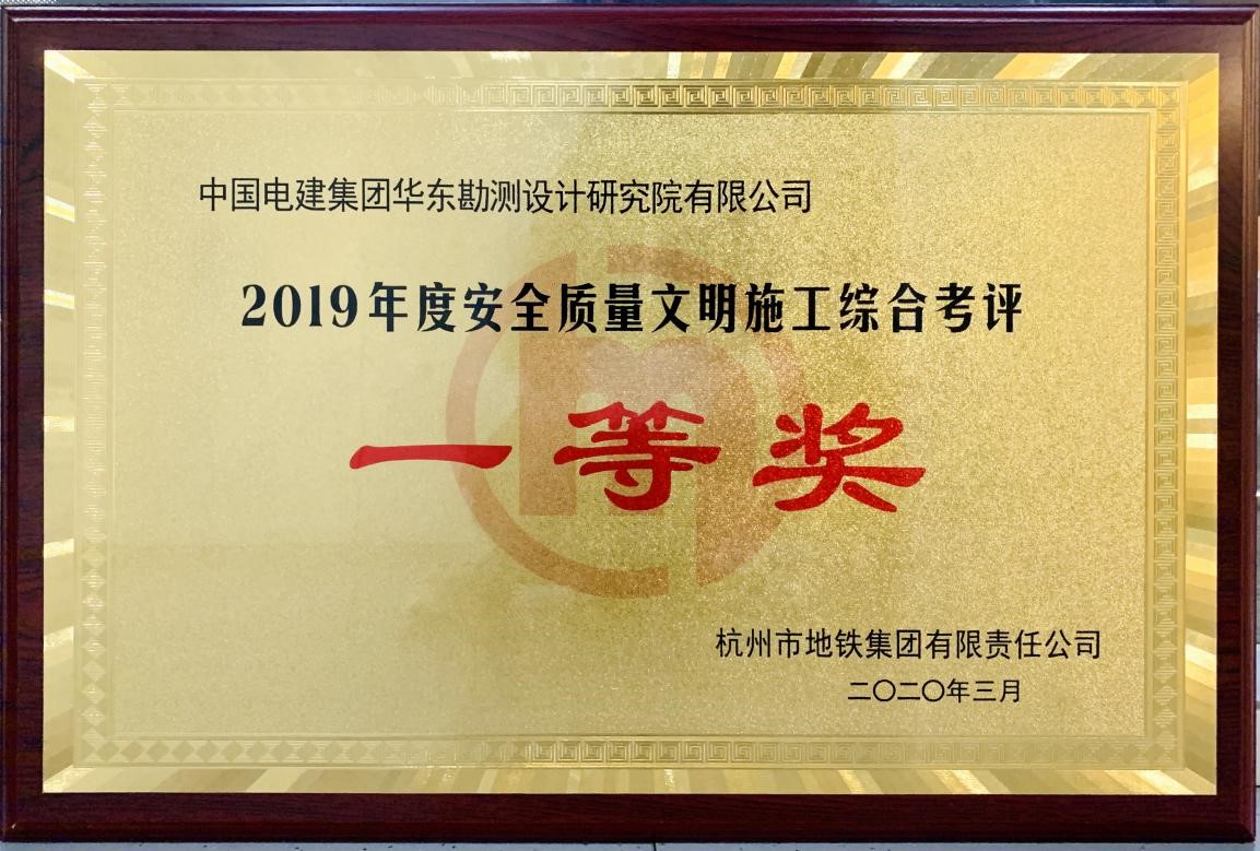 日前,我院杭州地铁风险咨询项目部荣获杭州地铁2019年度安全质量文明施工综合考评“一等奖”。项目部自2015年进入杭州地铁风险咨询市场以来,已连续五年获此殊荣。